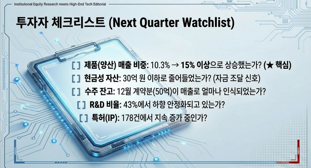 - 체크포인트: 향후 분기보고서에서 **제품 비중이 10% → 20% → 30%**로 계단식으로 올라가는지 추적하는 것이 주가 상승의 가장 확실한 시그널입니다.