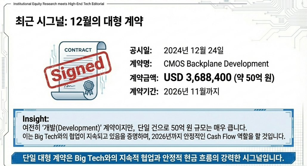 - 해석: 여전히 '개발(development)' 계약이지만, 금액 규모가 크고 기간이 구체적인 점은 긍정적입니다. 빅테크와의 협업이 지속되고 있음을 보여줍니다.