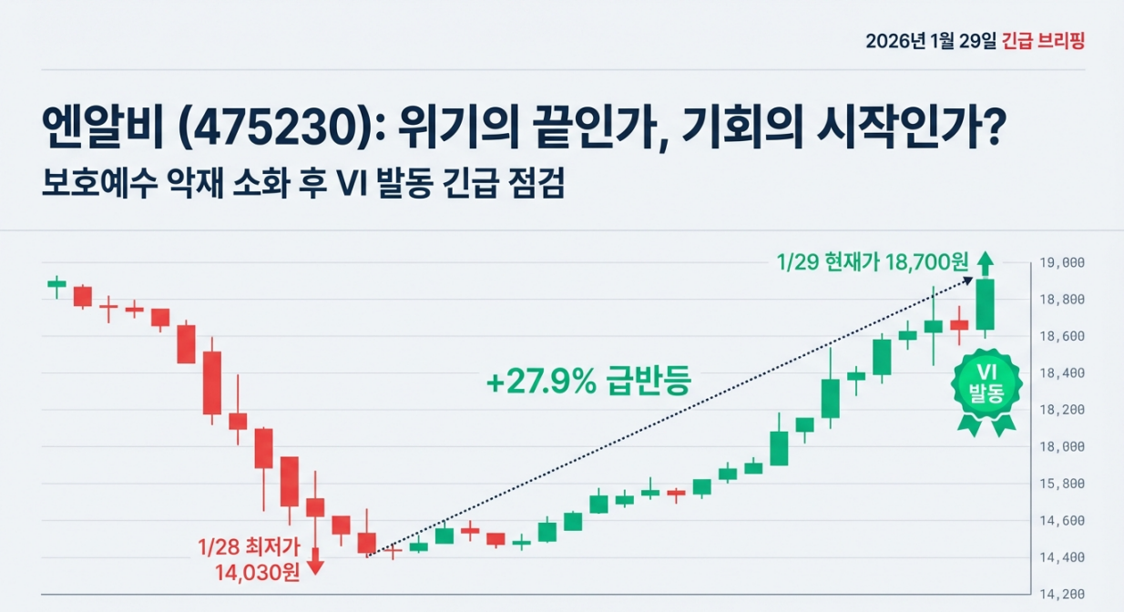 - 1/28 (어제): 상장 6개월 락업 물량(약 28만 주) 해제 공포로 투매 발생 → 사상 최저가(14,030원) 터치.