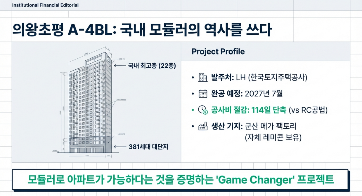 - 상징성: 국내 모듈러 역사상 최고층 기록입니다. 이 프로젝트의 성공은 곧 "모듈러로도 고층 아파트가 가능하다"는 것을 증명하는 것으로, 민간 시장 개화의 기폭제가 될 것입니다.