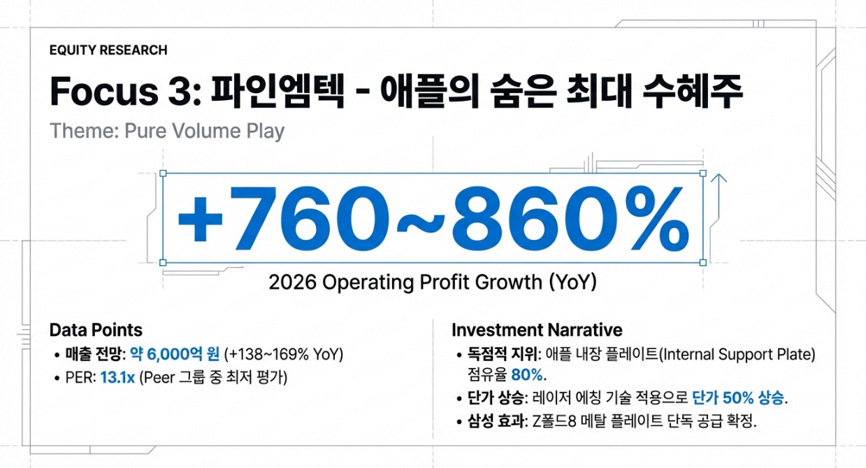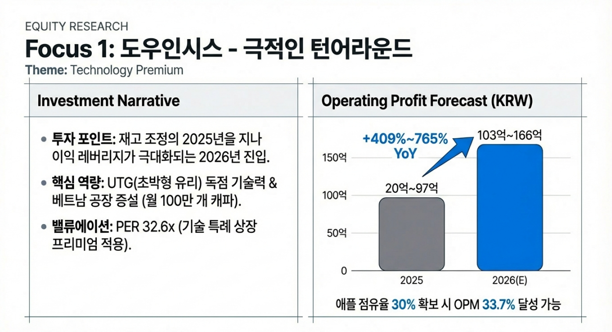- 2025년은 재고 조정으로 부진했으나, 2026년은 애플 공급망 진입 기대감과 삼성 신모델 효과로 이익 레버리지가 극대화되는 해