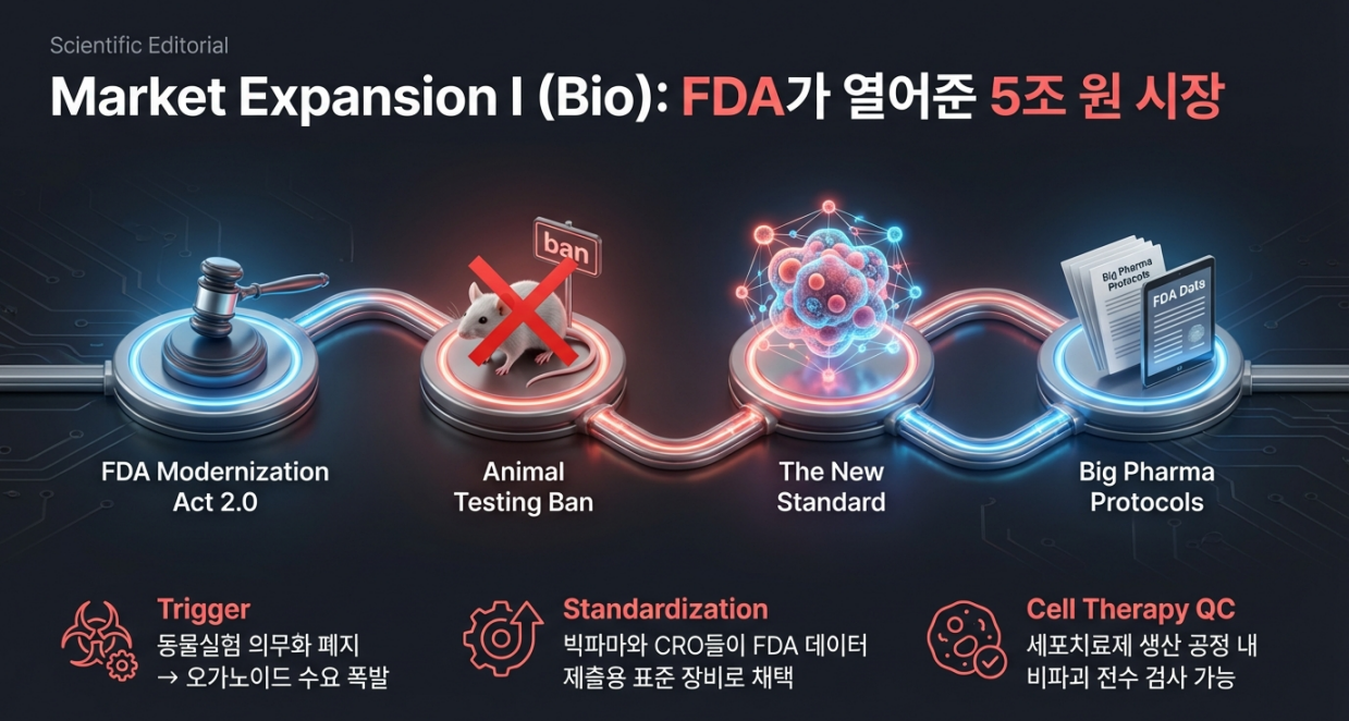 - 대신 **오가노이드(Organoid, 줄기세포로 만든 미니 장기)**나 생체 칩(Organ-on-a-chip) 데이터를 가져오라고 요구합니다.