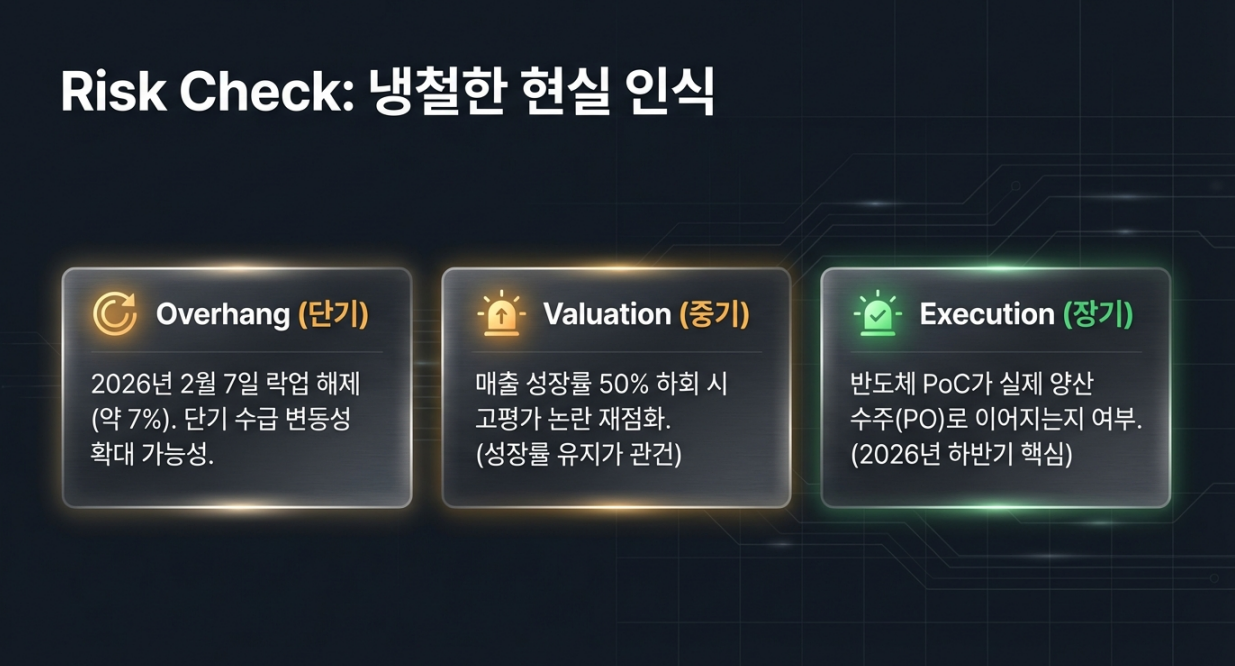 | 락업 해제 | 2026년 2월 7일 (약 7%) | 단기 수급·매물 부담 요인. 주가 변동성 확대 가능성 큼 |