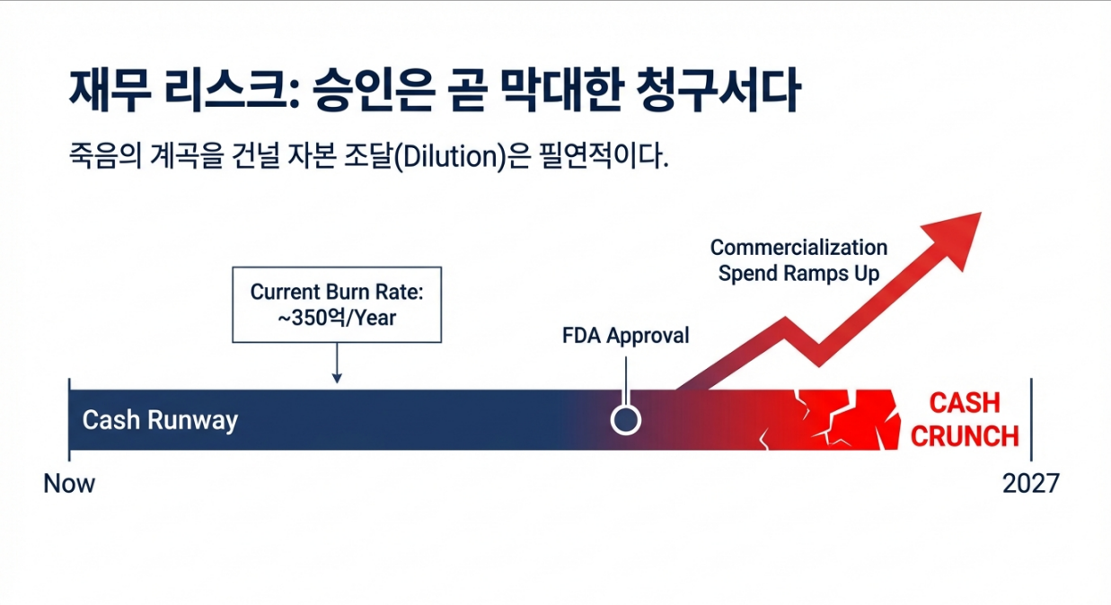 - 결과적으로 고정비(인건비·시설비)는 최소화되고, 임상이 집중되는 구간에서만 변동비가 튀어 오르는 재무 구조를 갖습니다.