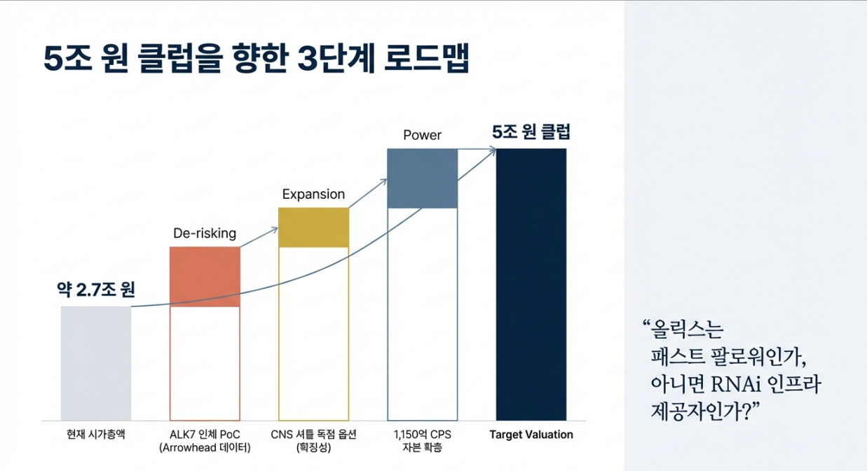 - 올릭스 ALK7 축의 생물학적 리스크 감소 → 플랫폼 전체에 대한 멀티플 상향 여지.