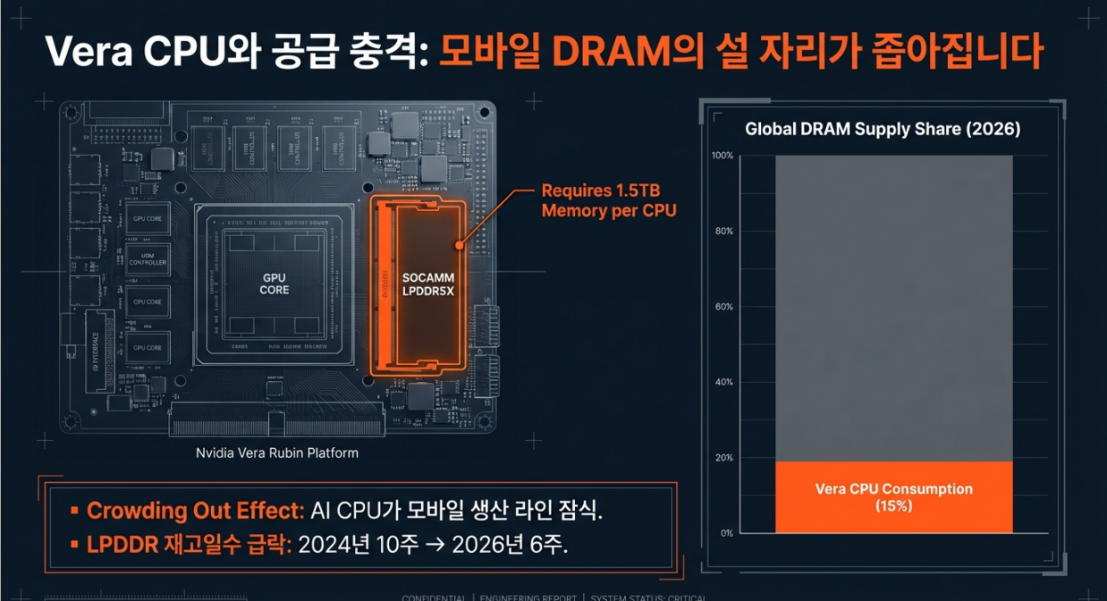 이 물량은 모바일·PC용 LPDDR 생산능력과 직접 경쟁하게 됩니다.