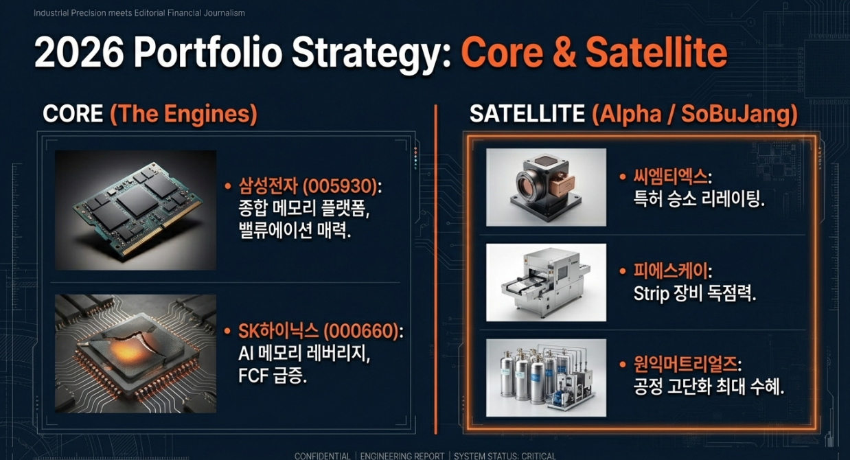 - 중심축: 삼성전자, SK하이닉스 (메모리 사이클·쇼티지의 가장 직접적인 수혜)