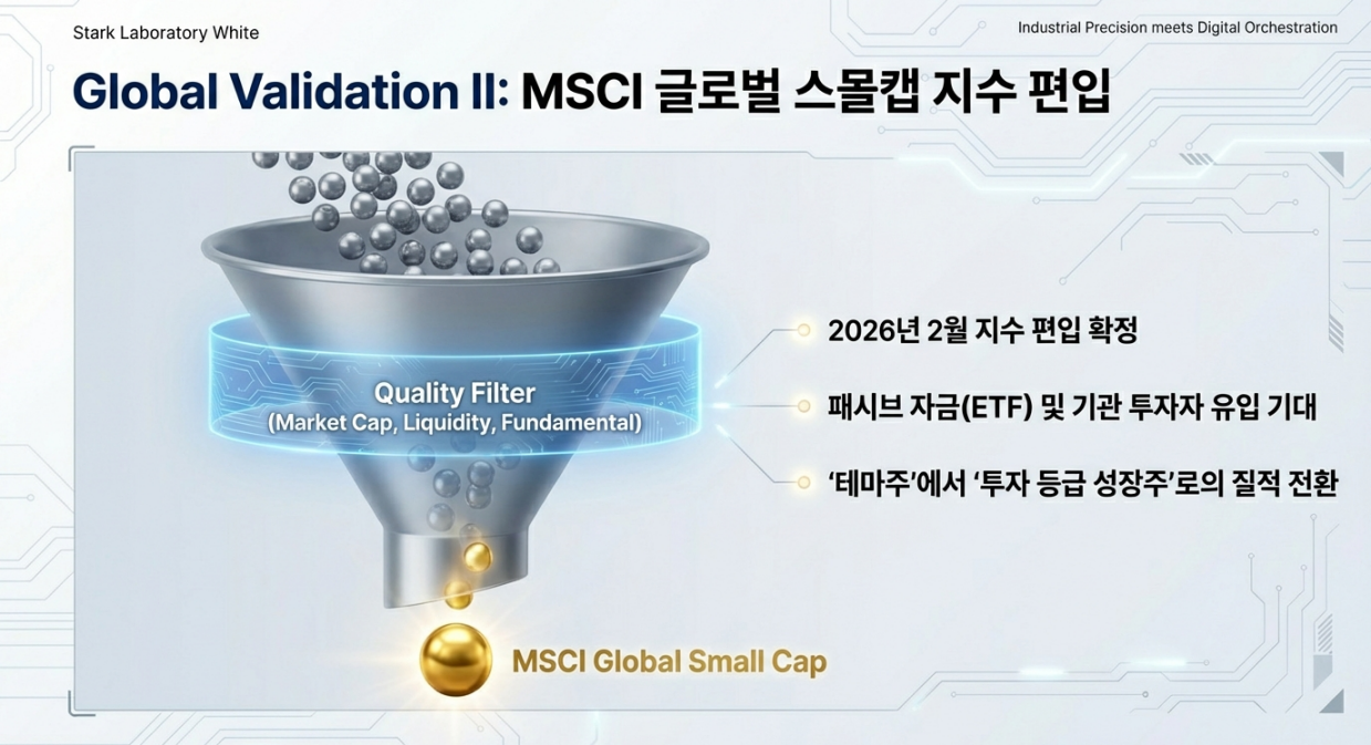 MSCI 편입·Spot SI 인증을 통해 글로벌 기술·수급 퀄리티 필터를 통과했습니다.