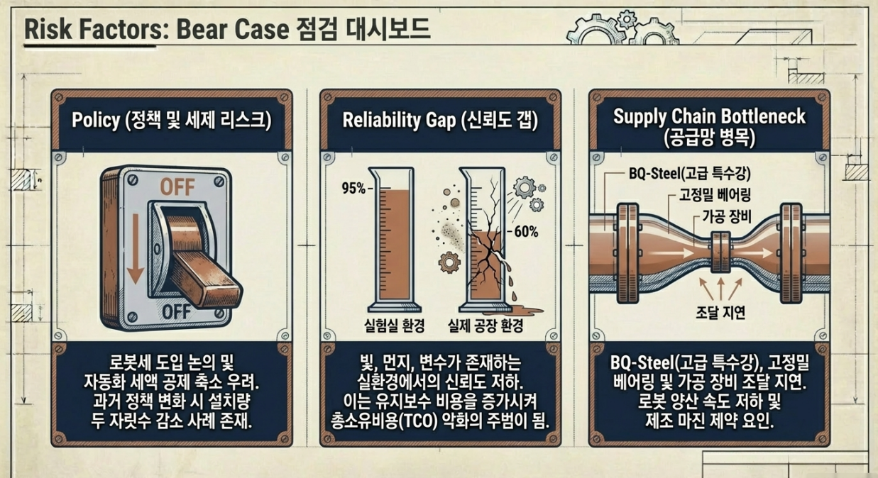 - BQ-Steel(고급 베어링·감속기용 특수강), 고정밀 가공·열처리, 정밀 베어링·센서 등 상위 밸류체인에 병목이 존재하며, 이는 오히려 단가·마진 방어에 유리한 구조입니다.