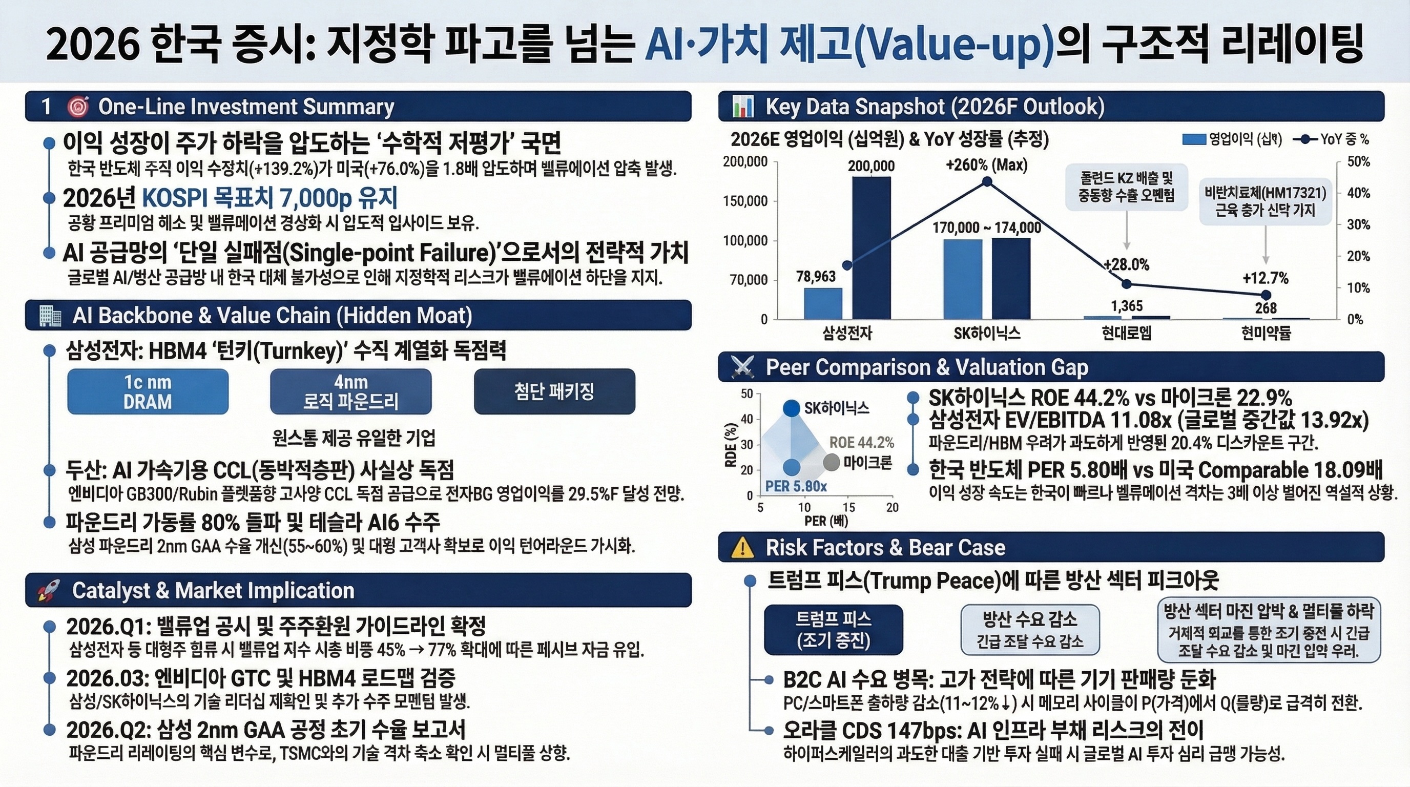 이번 리포트에서 가장 중요한 체크포인트: "이익은 늘고 가격은 줄어드는 '수학적 오류' 구간의 해소 → 코스피 7,000p 수렴"