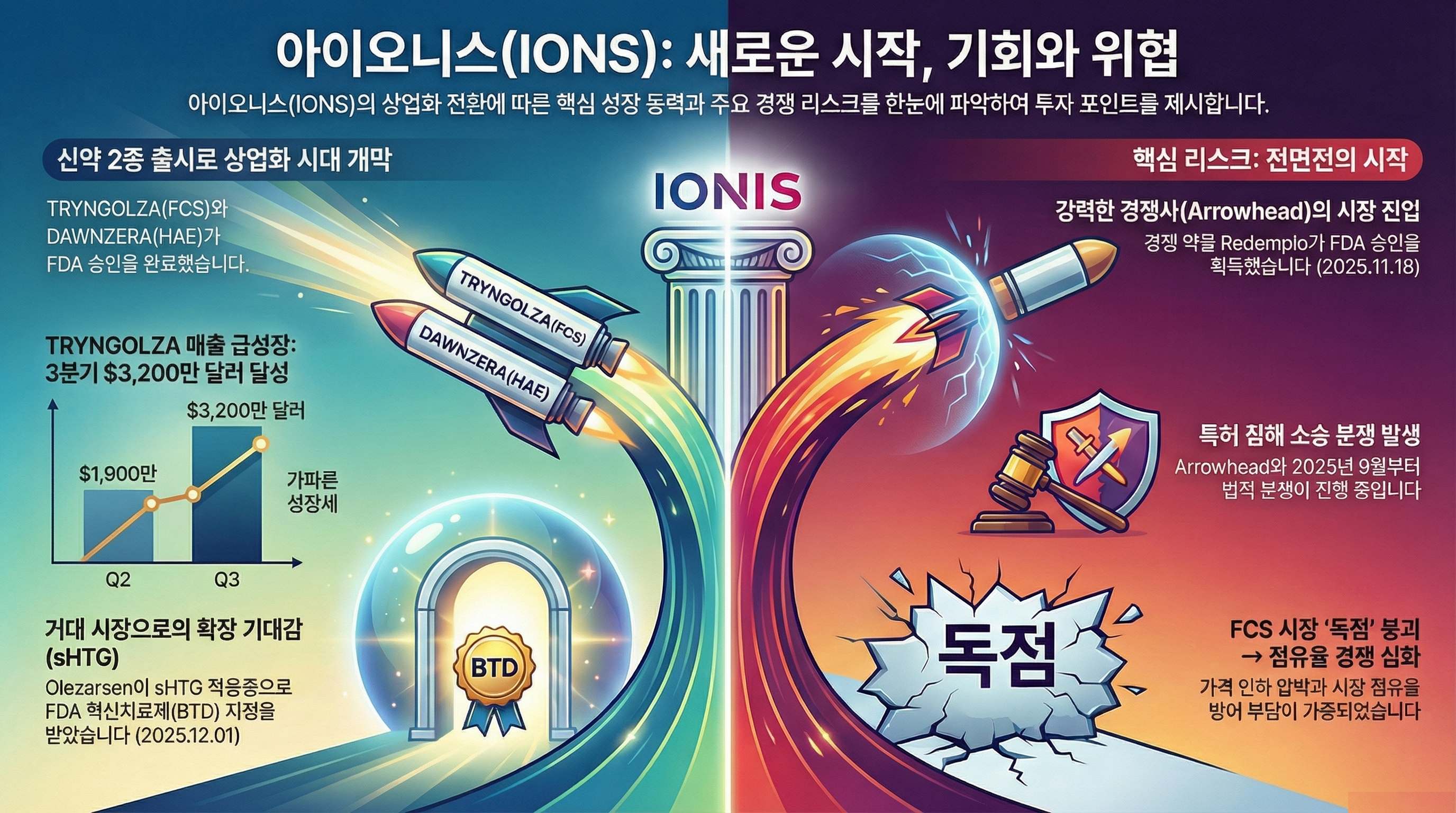 ⚠️ 충돌 경고: 경쟁사 리스크 (A) 경쟁 현황: 경쟁사 애로우헤드(Arrowhead)의 'Redemplo'가 2025년 11월 18일 FDA 승인을 받으며 시장 양분 구도가 확정되었습니다. (B) 법적 분쟁: 2025년 9월 시작된 애로우헤드와의 특허 침해 소송은 장기화 가능성이 있으며, 이는 주가에 노이즈로 작용 중입니다.