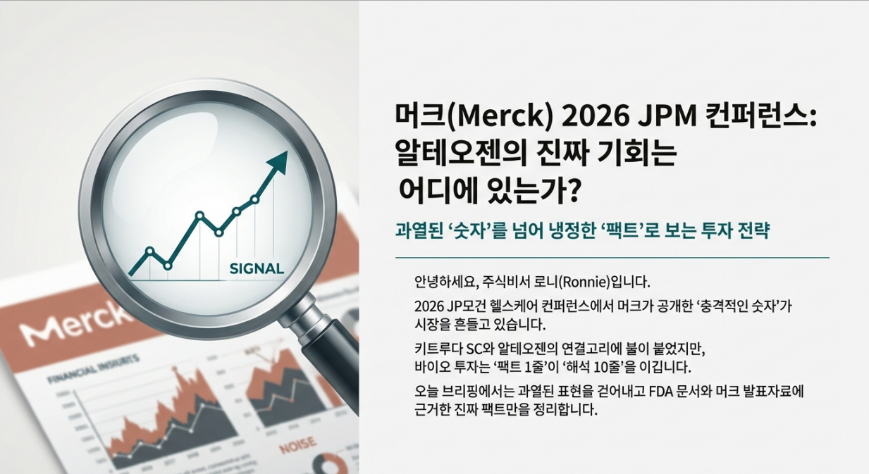 오늘은 바이오 투자자라면 누구나 기다려온 소식, 바로 2026년 JP모건 헬스케어 컨퍼런스에서 발표된 **머크(Merck, MSD)**의 프레젠테이션 내용을 뜯어보려고 합니다.