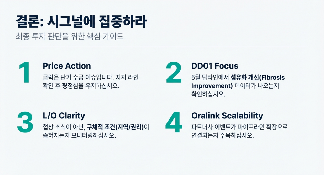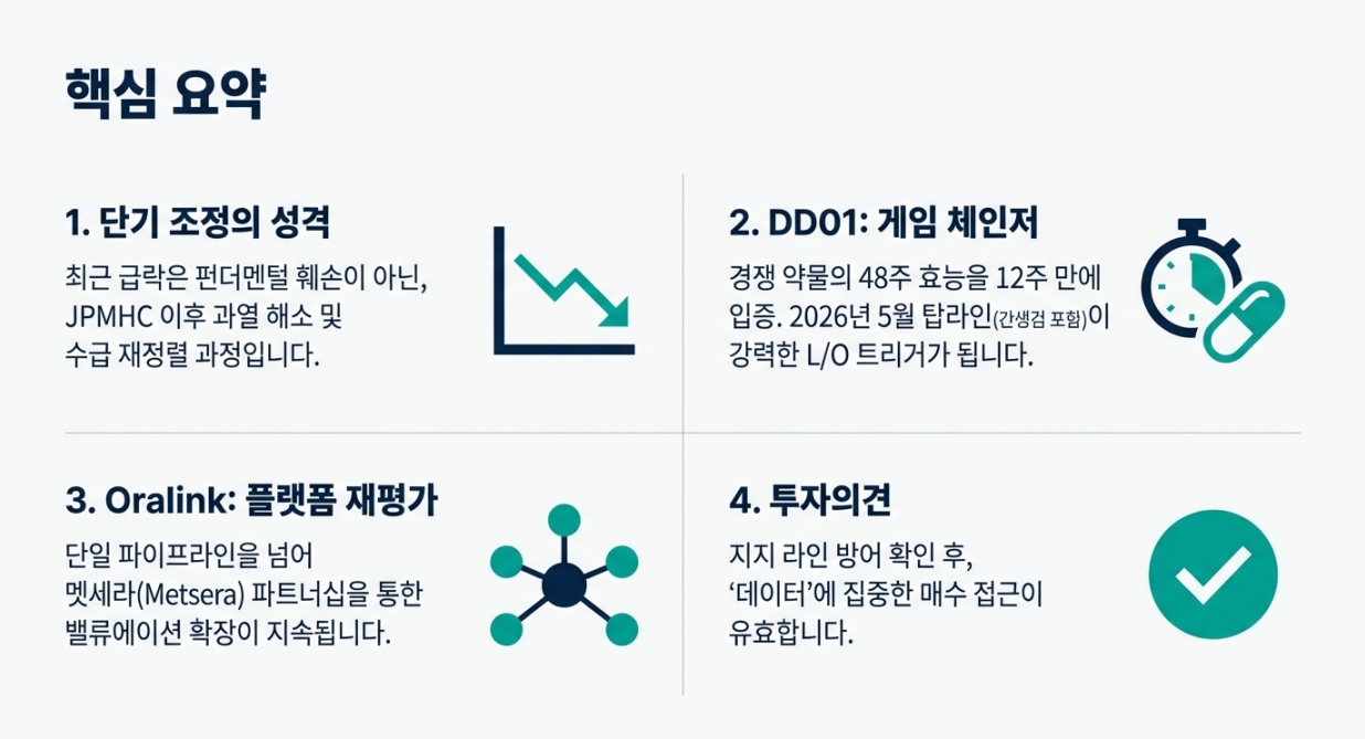 ✅ 결론: 오랄링크는 “DD01 이벤트 드리븐”과 별개로, 파트너(멧세라/빅파마) 쪽 뉴스 플로우가 밸류에이션에 레버리지를 만드는 축입니다.