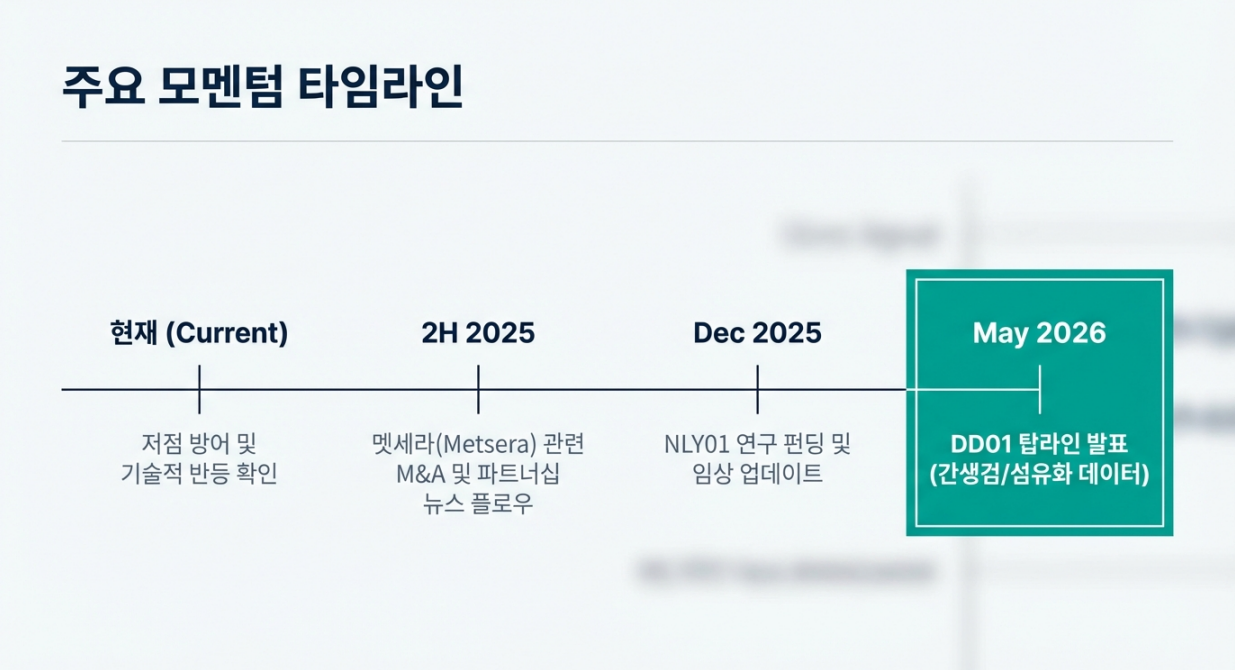 ✅ 결론: 5월 탑라인은 ‘L/O 스모킹 건’이 될 수 있는 구간이고, 여기서 시장이 진짜 보는 건 “지방 감소”를 넘어 **섬유화 개선(anti-fibrotic signal)**입니다.