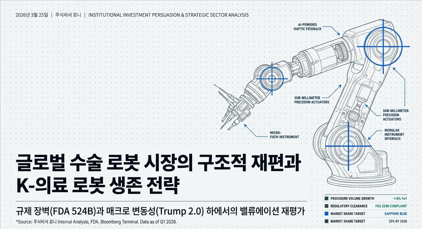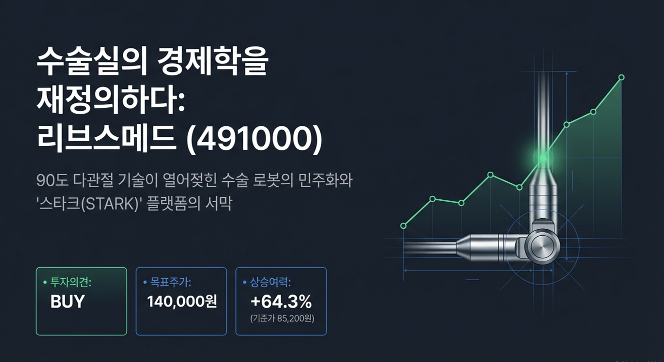 1. 📌 Executive Summary: 수술실의 경제학을 재정의하다 리브스메드는 단순한 수술 기구 제조사를 넘어, 전 세계 수술실의 경제성과 효율성을 혁신하는 '디지털 서저리(Digital Surgery)' 플랫폼 기업 으로의 변곡점에 서 있습니다. 2011년 6월 설립 이후 세계 최초의 상업용 90도 다관절 복강경 기구 '아티센셜(ArtiSential)'을 통해 복강경 수술의 표준을 재정의해온 동사는, 이제 수술 로봇 '스타크(STARK)' 플랫폼을 통해 인튜이티브 서지컬(Intuitive Surgical)이 독점해온 수백조 원 규모의 수술 로봇 시장에 강력한 균열을 내고 있습니다. 현재 리브스메드는 주력 제품 아티센셜의 글로벌 확산과 더불어, 아티실(ArtiSeal), 아티스테이플러(ArtiSt..